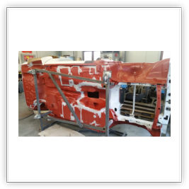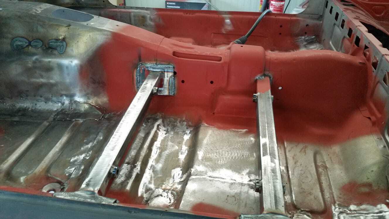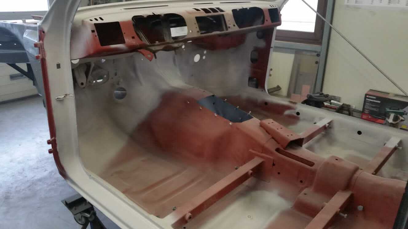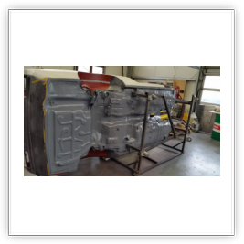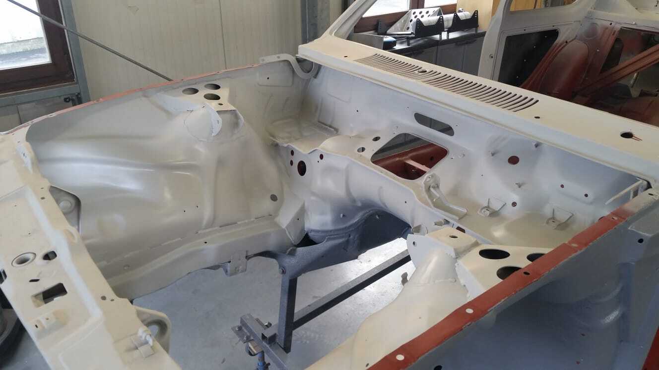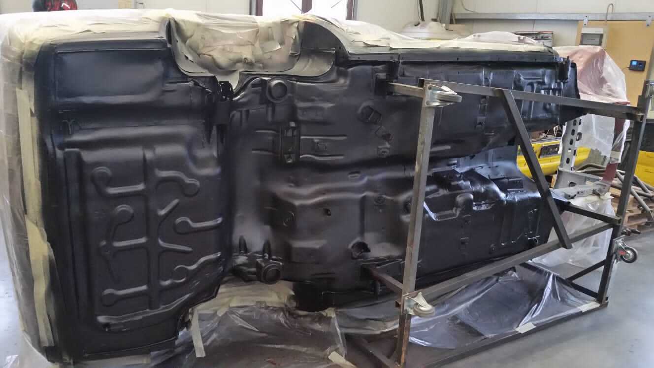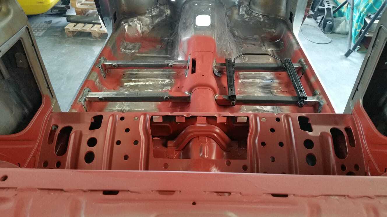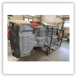 das Karosserieskelett eines Fahrzeugs. Dann erfolgt der weitere Aufbau.