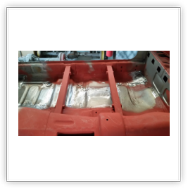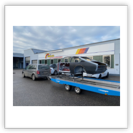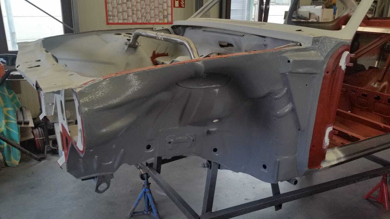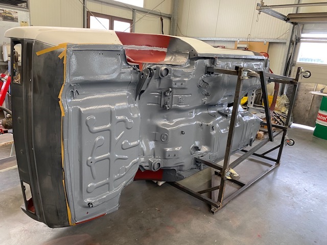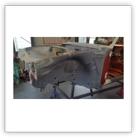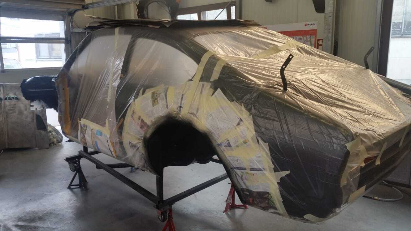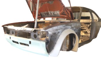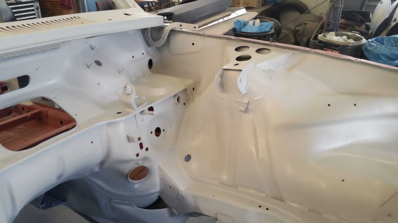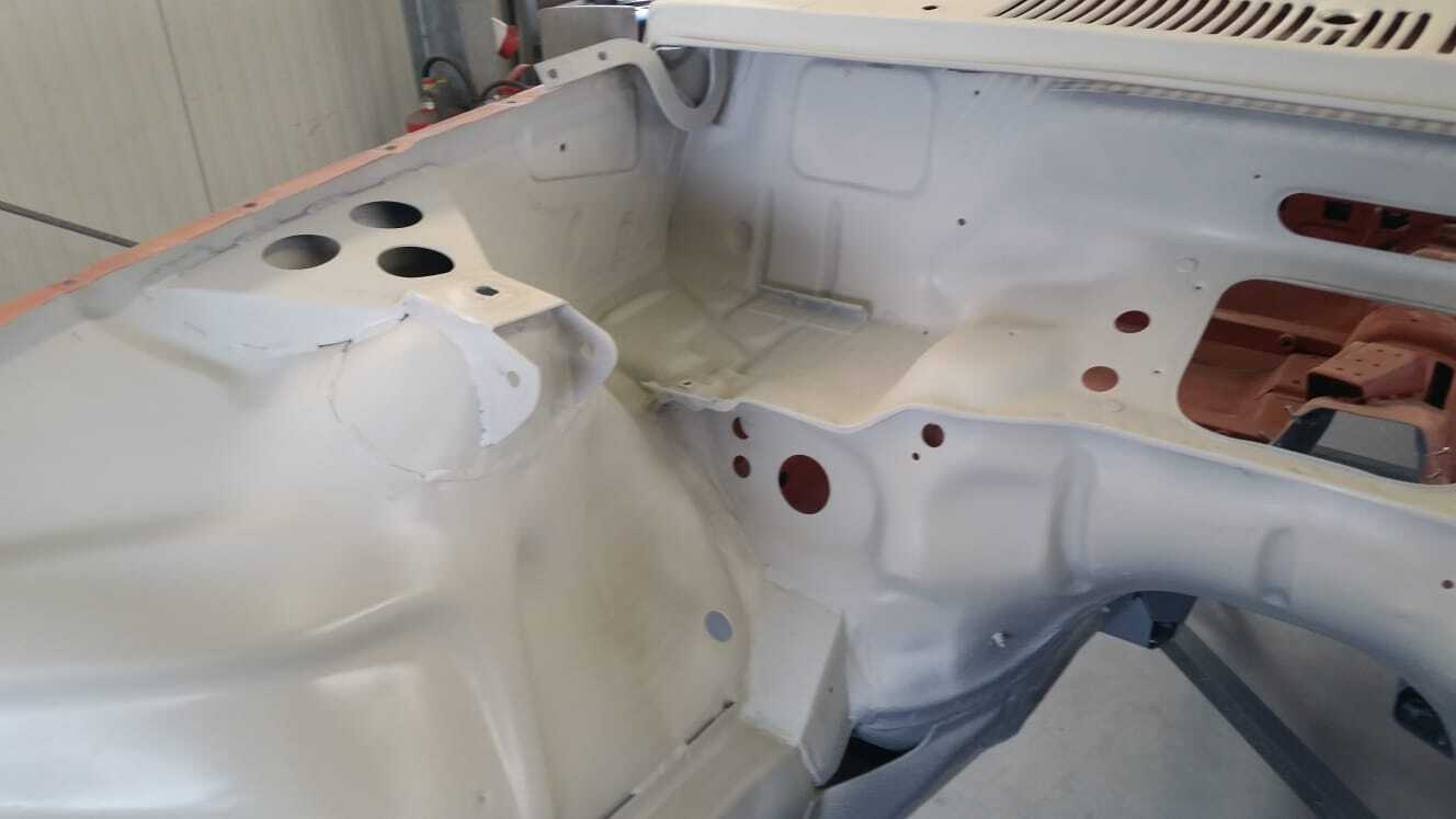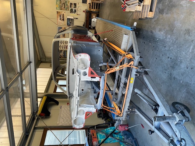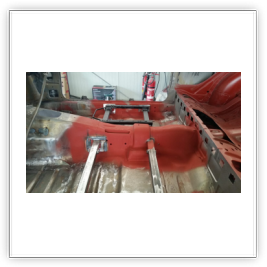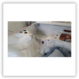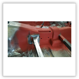 das Karosserieskelett eines Fahrzeugs. Dann erfolgt der weitere Aufbau.