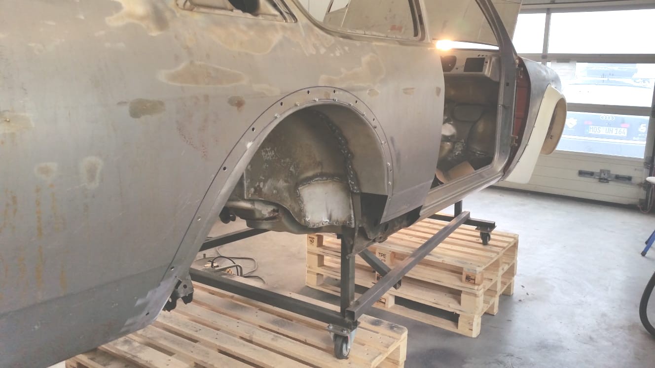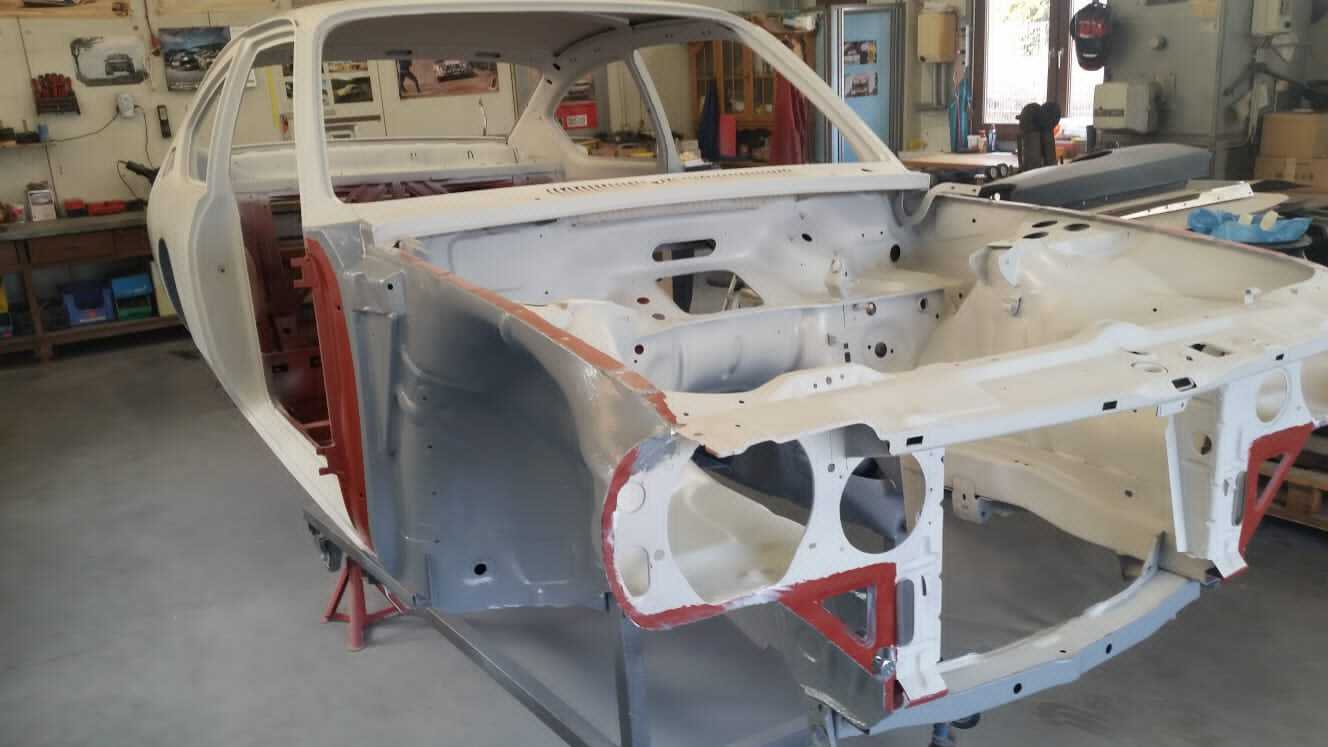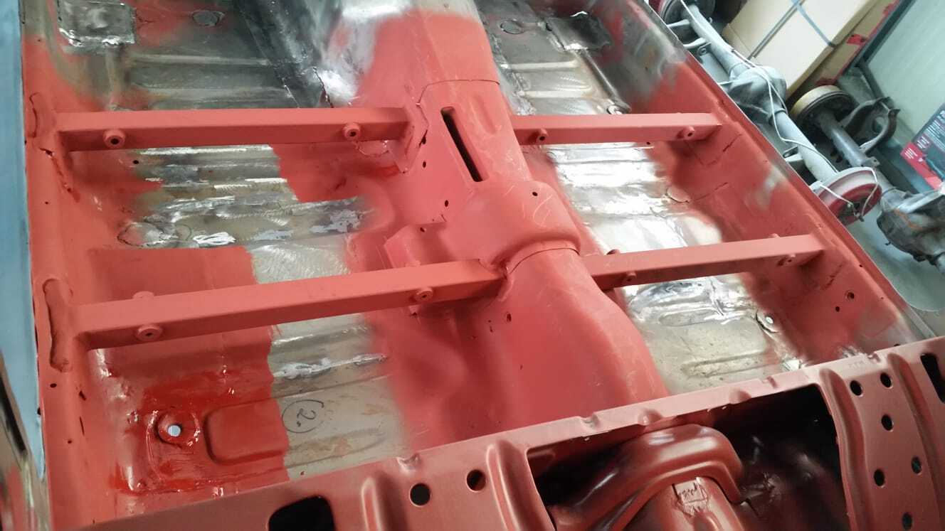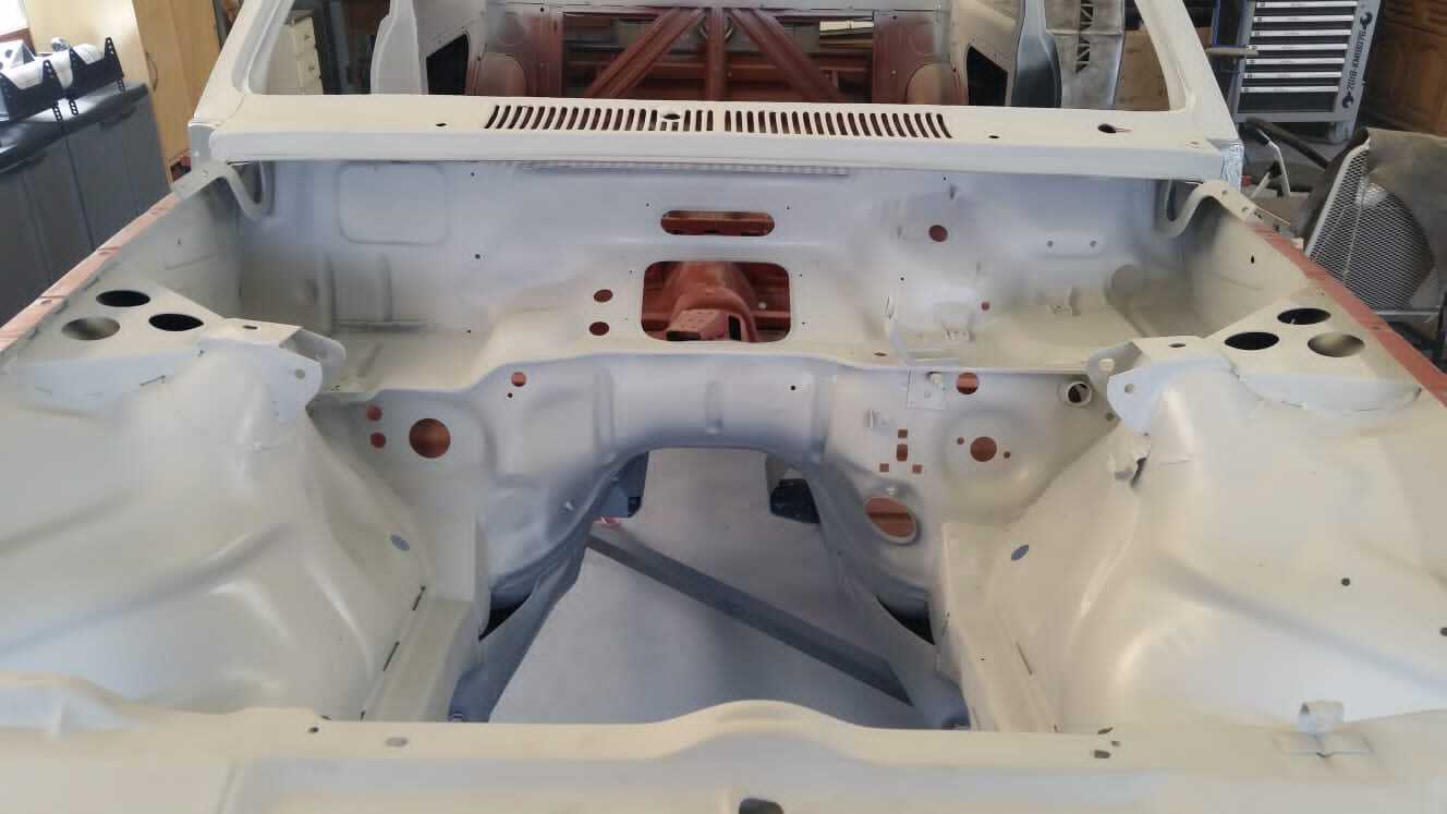das Karosserieskelett eines Fahrzeugs. Dann erfolgt der weitere Aufbau.