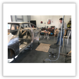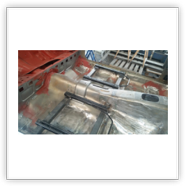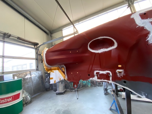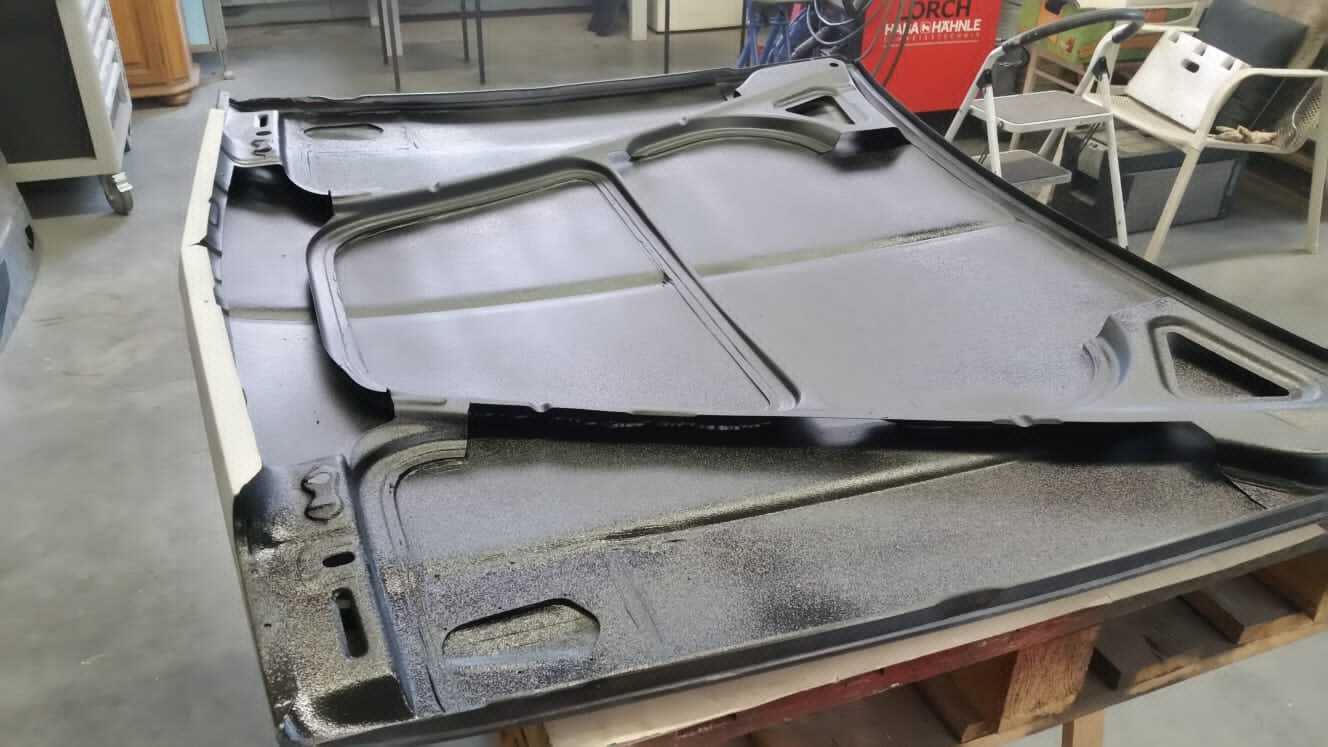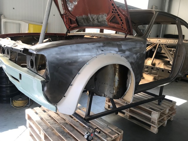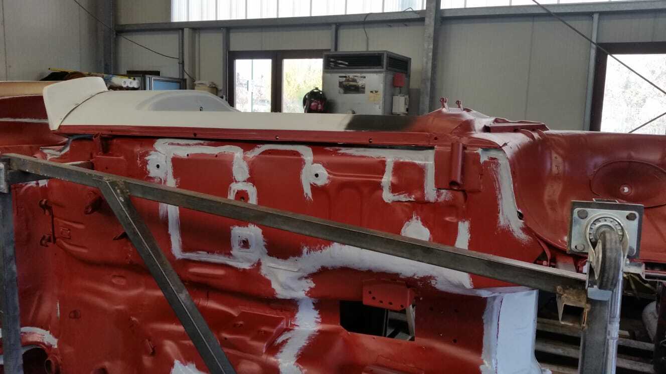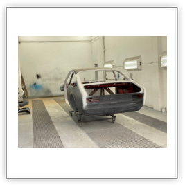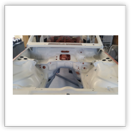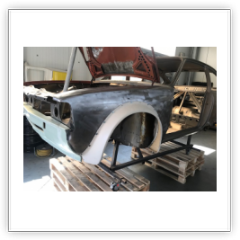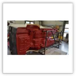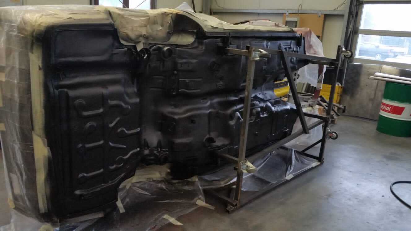 das Karosserieskelett eines Fahrzeugs. Dann erfolgt der weitere Aufbau.